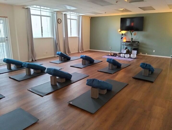 • All props provided: mats, bolsters, blocks, straps, blankets